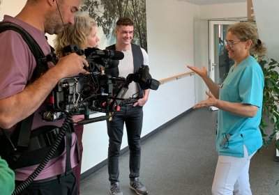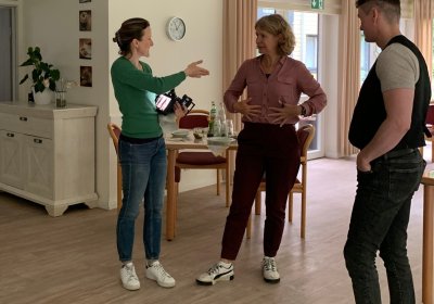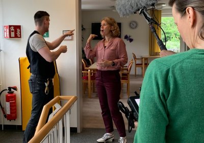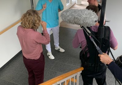 Das Film-Team mit Moderatorin Anke Klingemann hat unsere Bewohner*innen und Mitarbeiter*innen für eine zukünftige Sendung einen Tag lang begleitet. Im Juli wird die Sendung ausgestrahlt. Danke an alle Mitwirkenden und an das Team von "Sehen statt Hören" für den Besuch!