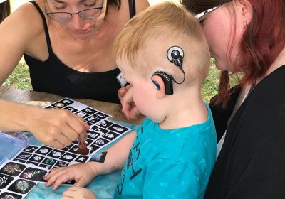 Währenddessen bot das gemeinsame Picknick eine wunderbare Gelegenheit für die Eltern, sich über ihre Erfahrungen auszutauschen. Themen wie Hörgeräte,