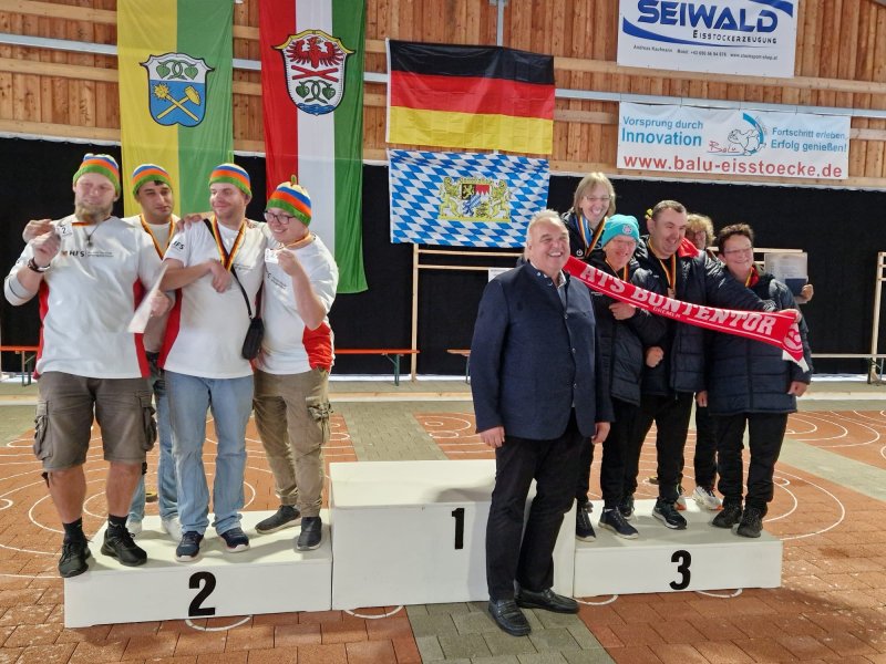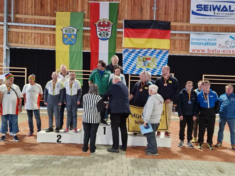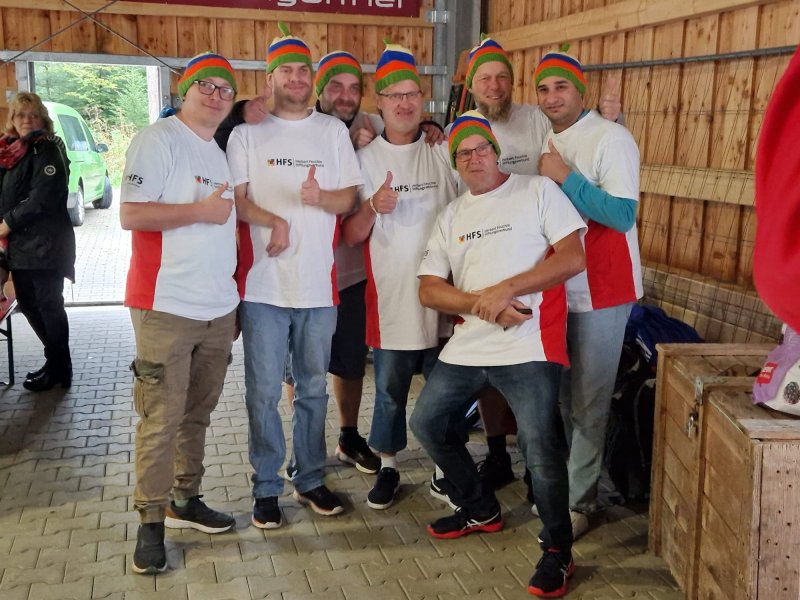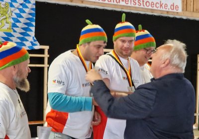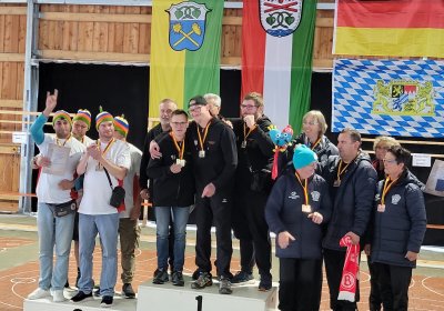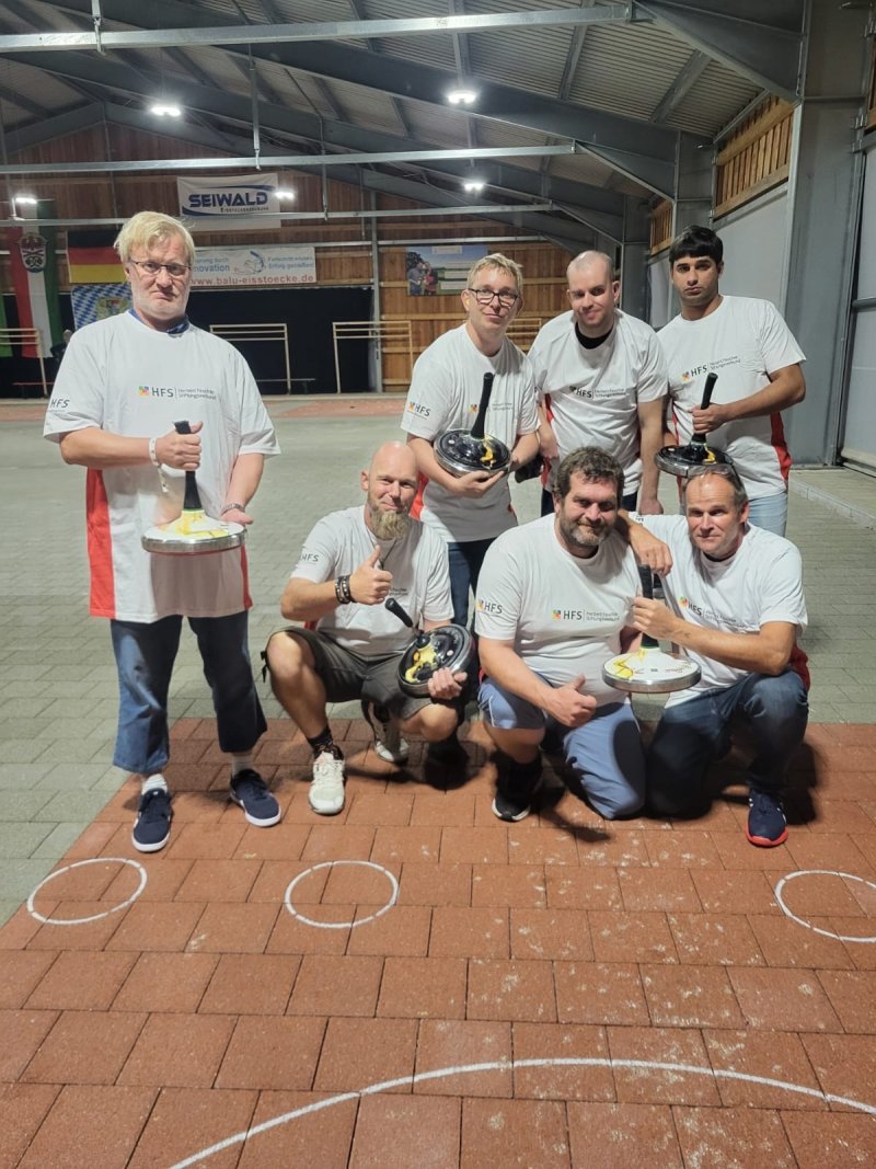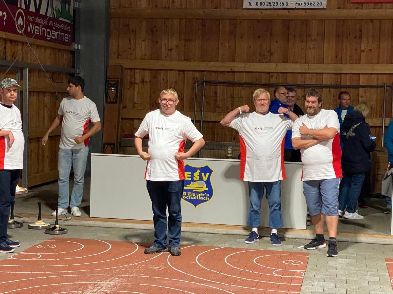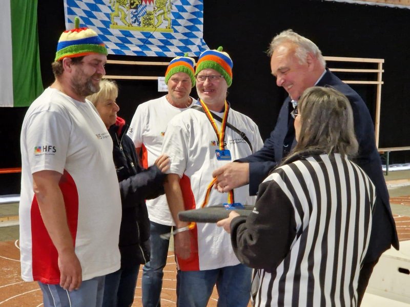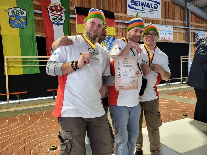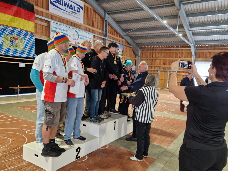 Zum ersten Mal nahmen zwei Mannschaften des HFS an den Special Olympics teil. Im Mannschaftsspiel „Duo“ belegten Waldemar Freiberger und Peter Fugmann den vierten Platz. Im Wettbewerb „Unified“ wurden Florian Lesch, Jan Verch, Dennis Wedemeyer und Stefan „Paule“ Lorenzen, als Unified Partner, Vizemeister. Im Gegensatz zu anderen teilnehmenden Teams, die schon jahrelang den Stocksport betreiben, sind die Jungs vom HFS als Neulinge anzusehen. Umso beachtlicher war das Auftreten in der Schaftlacher Stocksporthalle. Doch nicht nur die Leistungen fanden Beachtung, sondern auch das faire Auftreten und nicht zuletzt die Strickmützen, bekannt aus der Heider Winterwelt, die eine langjährige Kollegin bereits vor Jahren strickte und uneigennützig an die damalige Mannschaft abtrat. Der deutsche Stocksportmeister von 2023, Stefan Quercher, Mitorganisator der Wettkämpfe, zeigte sich derart beeindruckt, dass er als Abschiedsgeschenk eine Mütze geschenkt bekam und diese, als Andenken an die Jungs aus dem hohen Norden, im Vereinlokal aufhängen will. An den Wettbewerben nahmen Mannschaften aus Luxemburg, Österreich und Deutschland teil, aber keines hatte eine vergleichbar lange Anreise wie das Team HFS. Wir starteten am Freitag um 6 Uhr morgens und erreichten die Jugendherberge in Lenggries nach 12 Stunden Fahrt im Kleinbus. Nach Ankunft checkten wir schnell ein und verließen umgehend wieder die Herberge, um noch die Möglichkeit eines freien Trainings in der Stocksporthalle zu nutzen. Die Mannschaft, die das Jahr über in der Stocksport-Arena Süderholm trainiert, musste sofort feststellen, dass es auch schnellere Bahnen gibt als gewohnt. Erstaunlich, wie schnell man sich darauf einstellen konnte. Nach dem Training hatten wir die Möglichkeit in einem urigen bayrischen Gasthof zum Abend zu essen. Wir nutzten das und hatten so nach der langen Reise einen gemütlichen Ausklang des Tages. An unserer Seite im Gasthof, aber auch in der Jugendherberge und im Wettkampf waren Wolf Prager, Vorsitzender des SH-Stocksport-Verbandes, und seine Frau Jutta, die uns mit Rat und Tat zur Seite standen. Der zweite Tag begann um 7:30 Uhr mit einem guten Frühstück in der Herberge und dann ging es auch bald zu den Wettkämpen in die Stocksporthalle. Nach Beendigung der Meisterschaften gab es ein warmes Essen und danach fand eine sehr stimmungsvolle Siegerehrung statt, die sowohl die Teilnehmer als auch die Betreuer und Zuschauer begeisterte. Die Teams bekamen sehr schöne Medaillen, die sich nicht von denen der „Profis“ unterscheiden und dazu Urkunden. Den Abend vor unserer Abreise verbrachten wir im Freizeitraum der Jugendherberge und vertrieben uns die Zeit bei Tischtennis und Tischfußball. Am Sonntag starteten wir früh und waren nach zehn Stunden Fahrt zurück in Heide. Fazit: Es war ein besonderes und auch ein besonders schönes Erlebnis für alle. Wir waren ein Team, wie man es sich bestenfalls vorstellt. Ein schönes Gemeinschaftsgefühl und nebenbei noch der sportliche Erfolg.