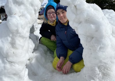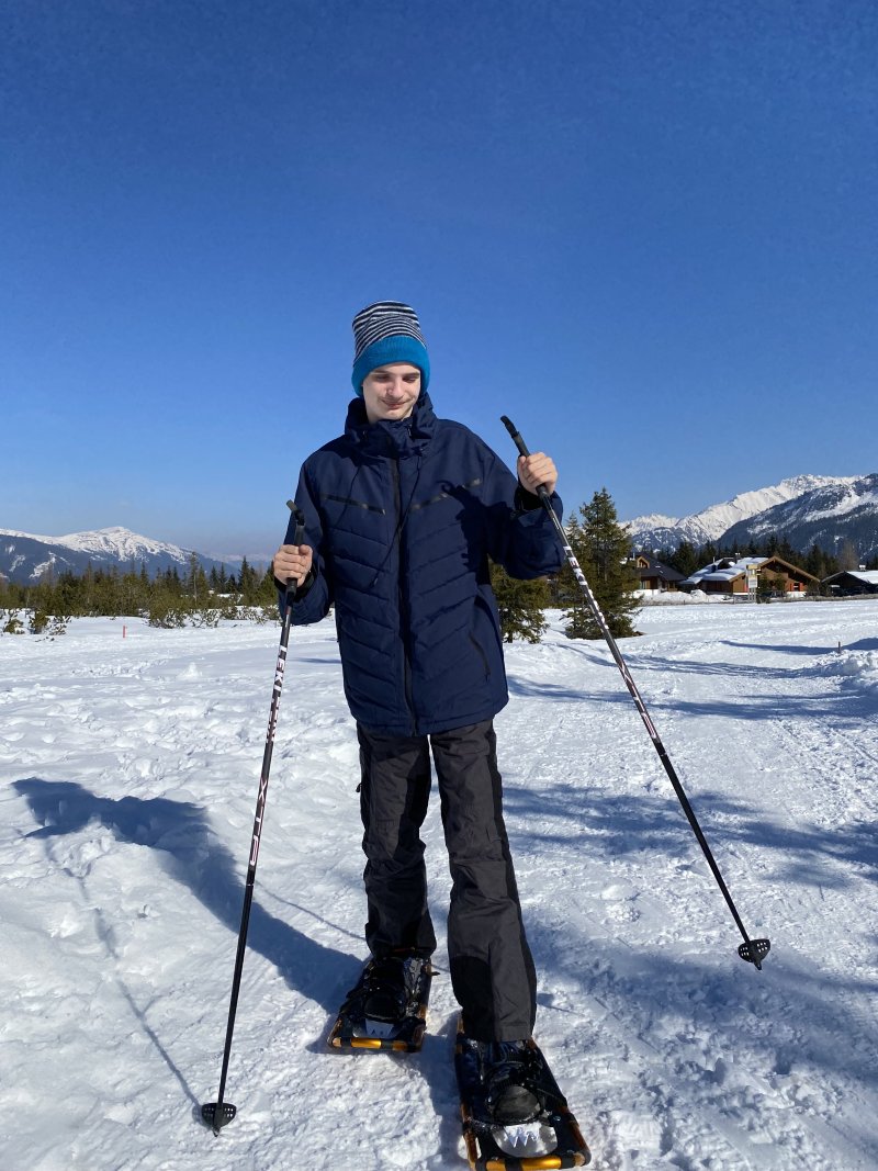 Im Ski-Gebiet am Hochkrimml konnten John, Jonny, Florian, Tobias, Wilhelm, Jannik, Jason, Eileen, Stella, Amelie und Dominik mit ihren Lehrer*innen und Betreuer*innen das Ski- Laufen erlernen.