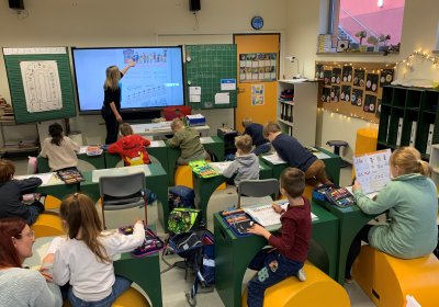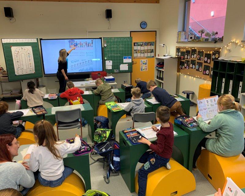 Unsere freie integrative Grundschule ist montags bis freitags von 6 bis 16 Uhr geöffnet. Der Unterricht dauert von 8 bis 15 Uhr. Er entspricht der Thüringischen Rahmenstundentafel. In den geräumigen lichtdurchfluteten Klassenräumen werden Kinder zweier Klassenstufen zusammen unterrichtet. Die Klassen haben bis zu 20 Kindern, von denen höchstens vier sonderpädagogisch gefördert werden. Während des Unterrichts sind ein*e Grund- und Förderschullehrer*in sowie eine sozialpädagogische Fachkraft gleichzeitig in der Klasse. Wir arbeiten eng mit der ebenfalls vom Herbert Feuchte Stiftungsverband betriebenen Förderschule im selben Gebäude zusammen.