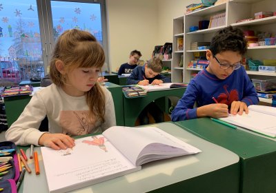 Kommunikation ist eine Schlüsselfähigkeit. Die Schüler*innen können bei uns ab der 1. Klasse Englisch lernen. Außerdem können sie unterrichtsbegleitend lautsprachbegleitende Gebärde lernen und sich so mit Kindern der privaten Förderschule in unserem Gebäude verständigen.