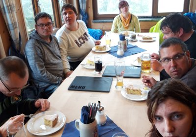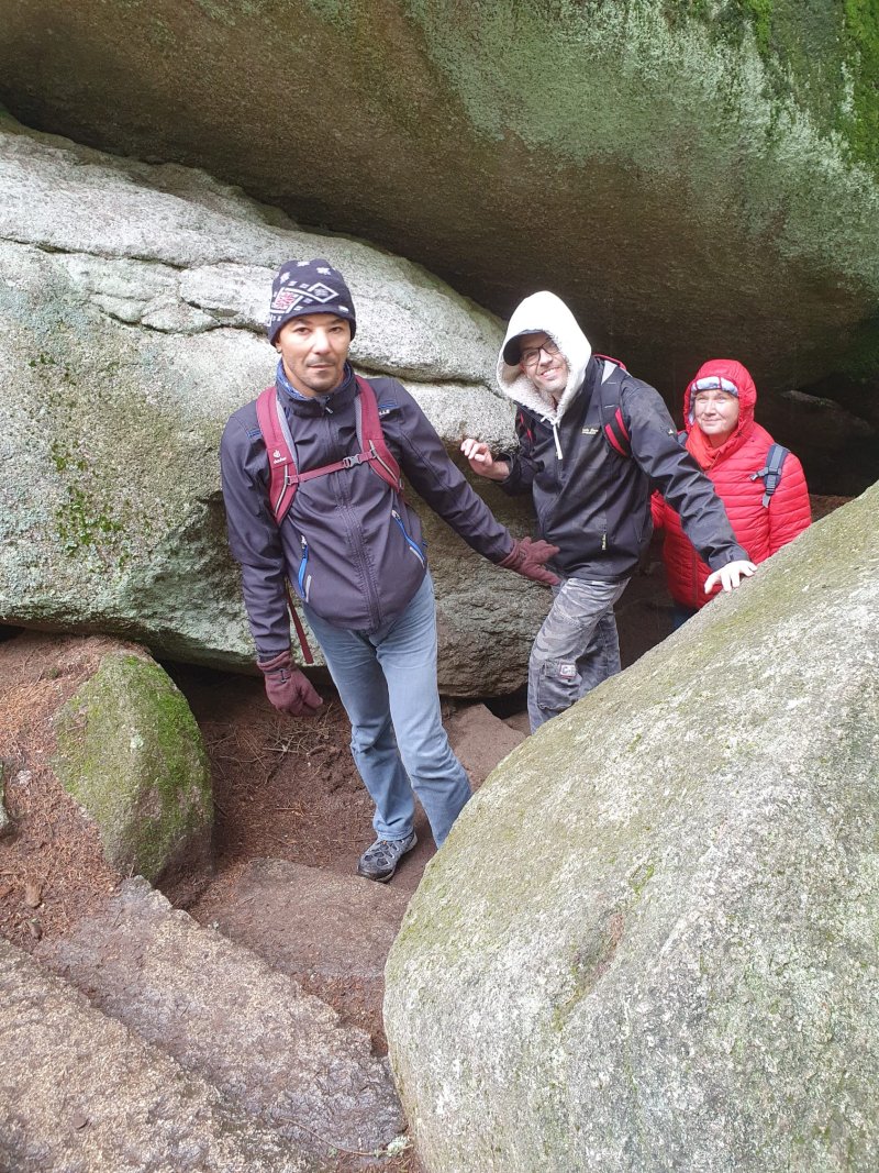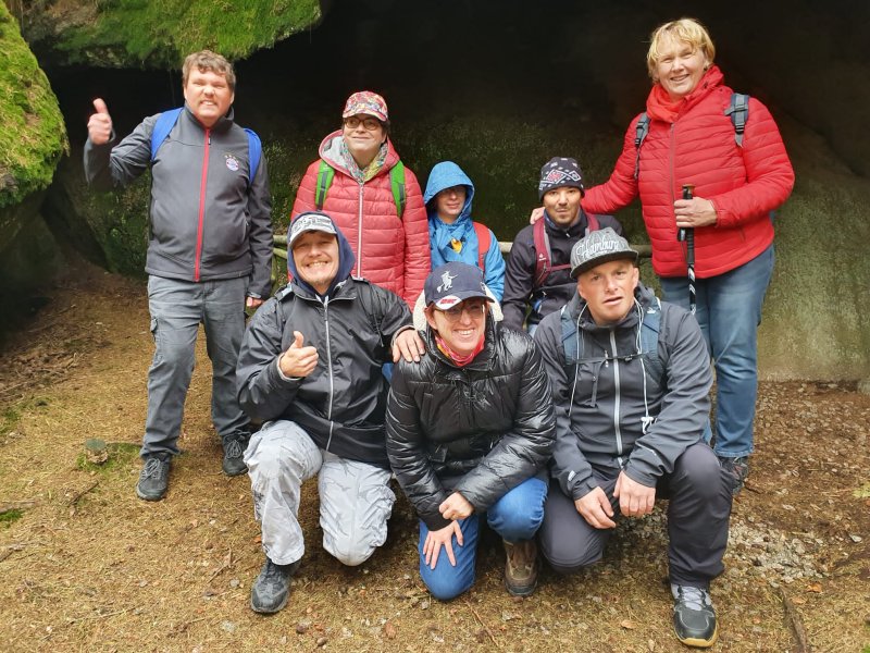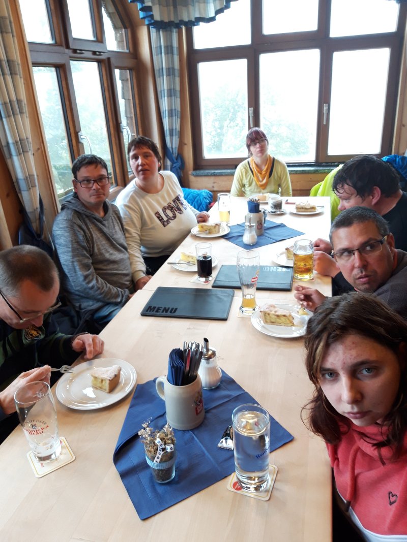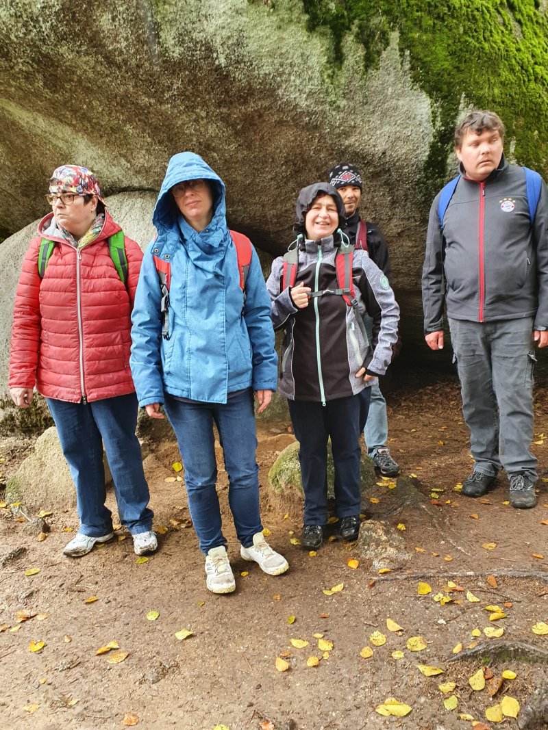 Zusammen mit Sigrun Bähr, sind einige unserer erwachsenen Bewohner*innen durch's Felsenlabyrinth auf die Kösseine gewandert. Die Kösseine ist ein beeindruckendes Bergmassiv im Nordosten Bayerns südlich von Wunsiedel. Das regnerische Wetter hat die „Wanderer“ nicht davon abgehalten Ihr Ziel, das Kösseinehaus, ein beliebtes Wander- und Ausflugsziel im Fichtelgebirge zu erreichen. Hier angekommen, konnten sich alle am gemütlichen Kachelofen aufwärmen.