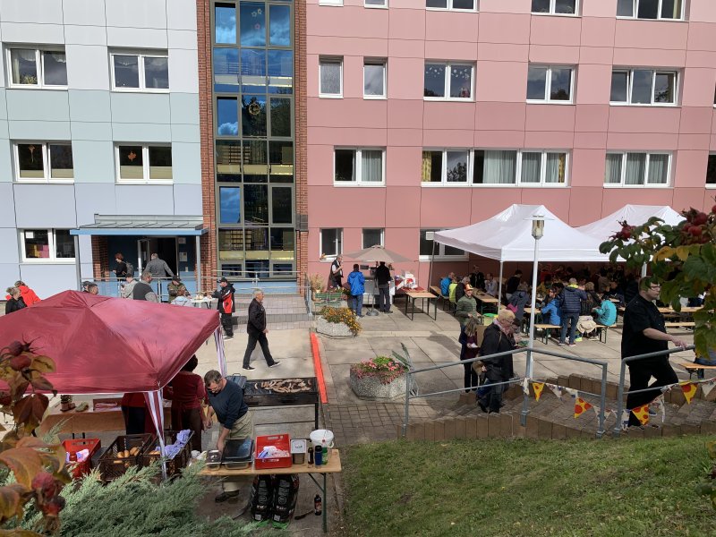 Unter dem Motto „Fest der Sinne“ haben wir am 8. Oktober 2022 mit unseren Schüler*innen, Bewohner*innen, deren Angehörigen und allen Interessierten unser Herbstfest gefeiert. Für unsere Gäste hatten wir viele verschiedene Stationen aufgebaut an denen sie Ihre Sinne: Hören, Sehen, Schmecken und Fühlen testen konnten. Besonderes Highlight war die feierliche Eröffnung eines Sinnesgarten, der unseren Kinder und erwachsenen Bewohner*innen nun zum Erkunden und Experimentieren zur Verfügung steht.
