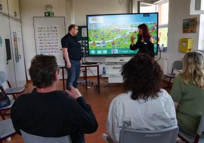 Nach 2-jähriger „Corona-Pause“ hat unser Gebärdensprachteam Ramona Enke (Förderschule), Mario Muckisch (Wohnheim Wisentablick) und Danny Brandt (Gebärdensprachdolmetscher) endlich wieder zum Gebärden-Kommunikationskurs eingeladen. Gerichtet ist der Kurs an Eltern, Familienangehörige und Betreuer*innen von Wohnheim-Bewohner*innen, Schüler*innen und Klienten des FFBZ. Durch gemeinsames Gebärden und kommunikationsfördernde Spiele sollen die Teilnehmer*innen in der Kommunikation mit ihren kleinen und erwachsenen Kindern unterstützt werden. Das Thema war „Hurra, hurra der Frühling ist da“. Nach den Sommerferien soll der Kurs weitergeführt werden.