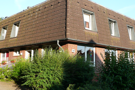 Der Stadtteil Poppenbüttel gehört zu den gehobenen Wohnlagen Hamburgs. Im Grünen, umgeben von Einfamilienhäusern wurde hier in den 90er Jahren ein modernes Zuhause für 20 hör- und sprachgeschädigte Erwachsene gebaut. Sie leben hier wie in einer Wohngemeinschaft mit familiärem Charakter. In ihrem Umfeld sind sie akzeptiert und integriert. Alle Bewohner*innen gehen einer regelmäßigen Beschäftigung in einer der Werkstätten für behinderte Menschen in und um Hamburg nach.