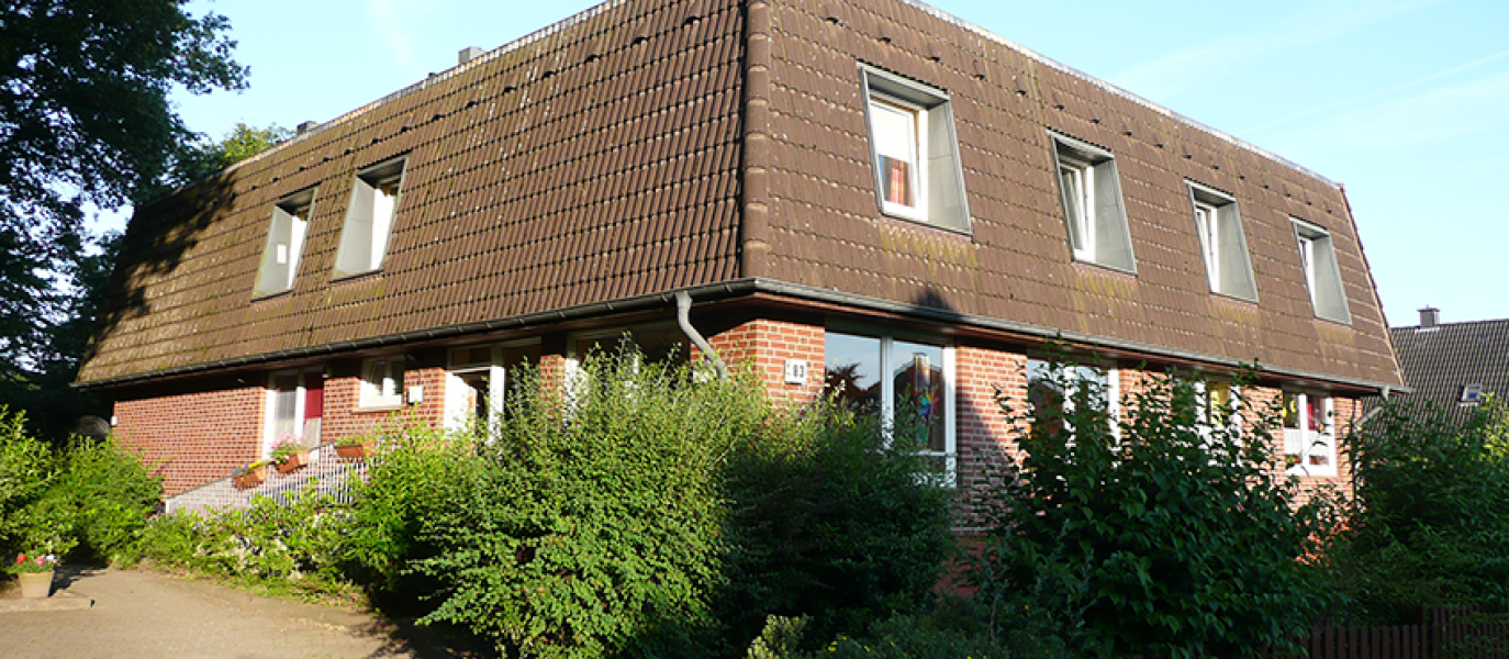Der Stadtteil Poppenbüttel gehört zu den gehobenen Wohnlagen Hamburgs. Im Grünen, umgeben von Einfamilienhäusern wurde hier in den 90er Jahren ein modernes Zuhause für 20 hör- und sprachgeschädigte Erwachsene gebaut. Sie leben hier wie in einer Wohngemeinschaft mit familiärem Charakter. In ihrem Umfeld sind sie akzeptiert und integriert. Alle Bewohner*innen gehen einer regelmäßigen Beschäftigung in einer der Werkstätten für behinderte Menschen in und um Hamburg nach.